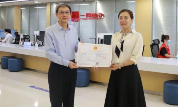 上海市商場監督管理局副局長許瑾在嘉定區行政服務中心全程為企指導幫辦,並當場向企業頒發了答應證。